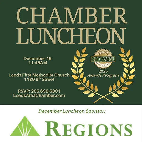 We’re wrapping up the year with a special luncheon on Thursday, December 18, at 11:45 AM at Leeds First Methodist Church, and we’d love to have you with us as we celebrate outstanding individuals and organizations in our community.